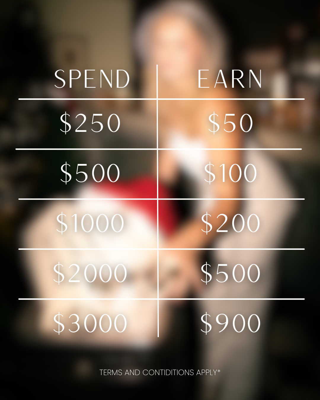 Holiday perks are here. Shop through December 1st and earn up to a $900 Gift Card to treat yourself or someone you love.