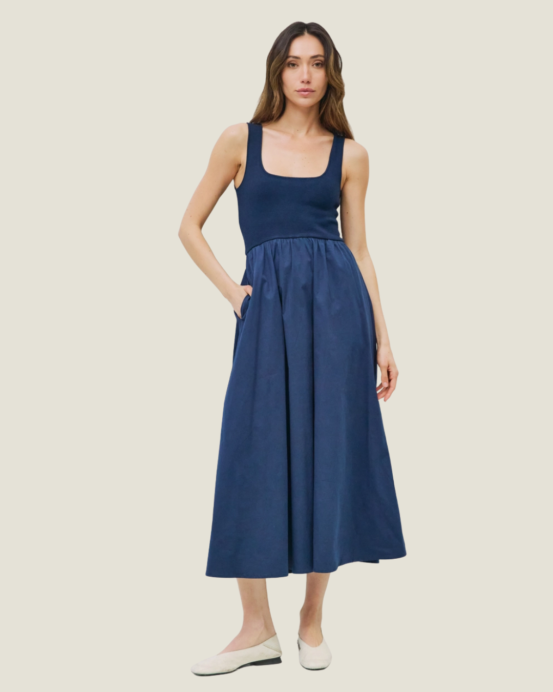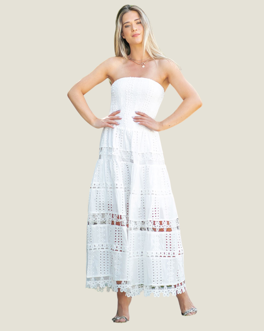 MaryAnn Light Blue Eyelet Lace Tube Midi Dress