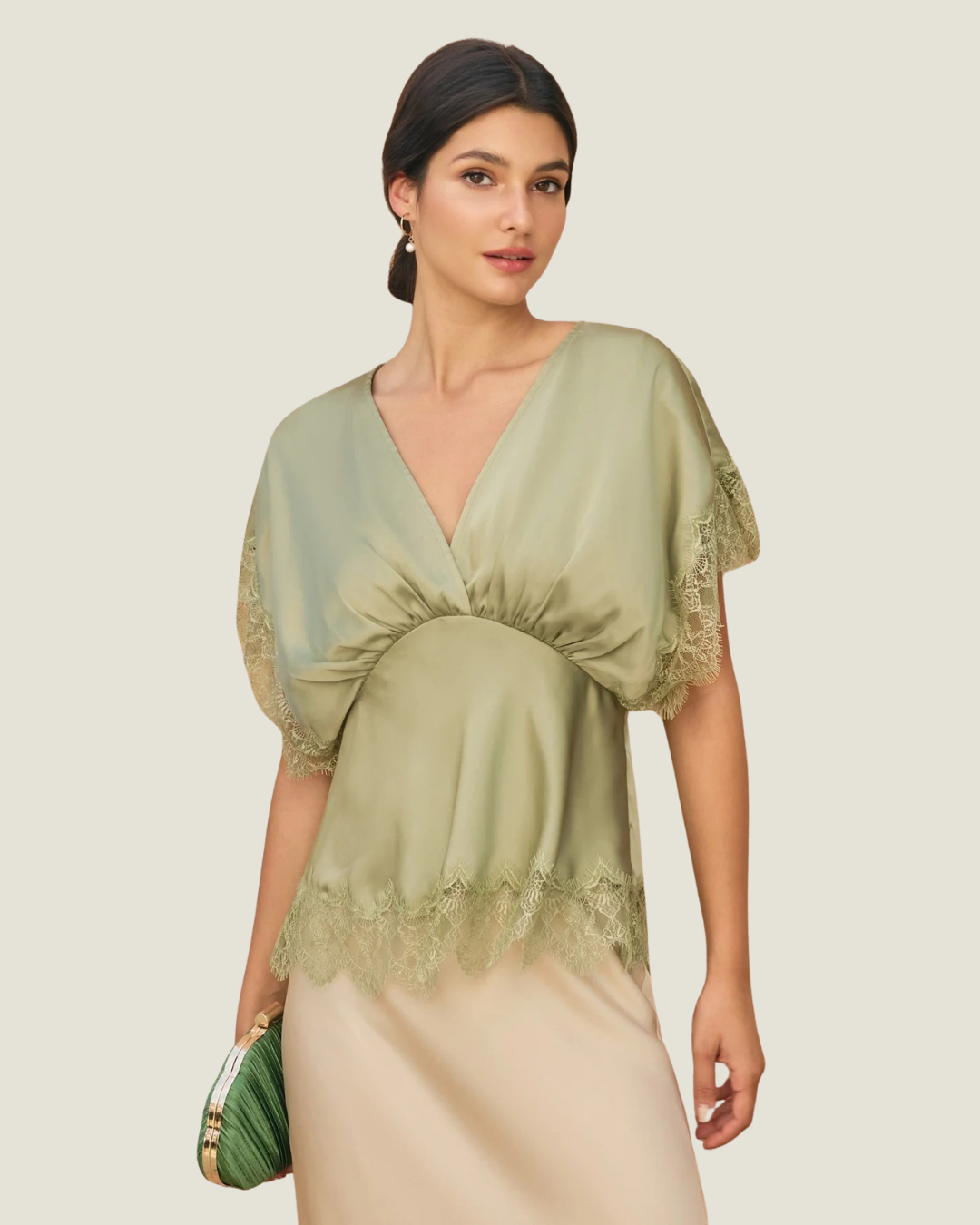 Celine Satin Lace Trim Top