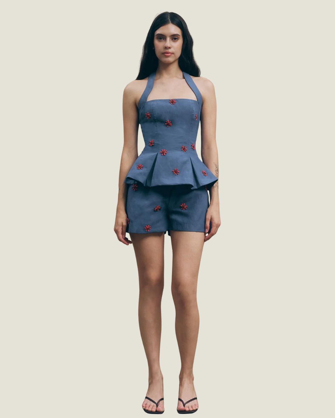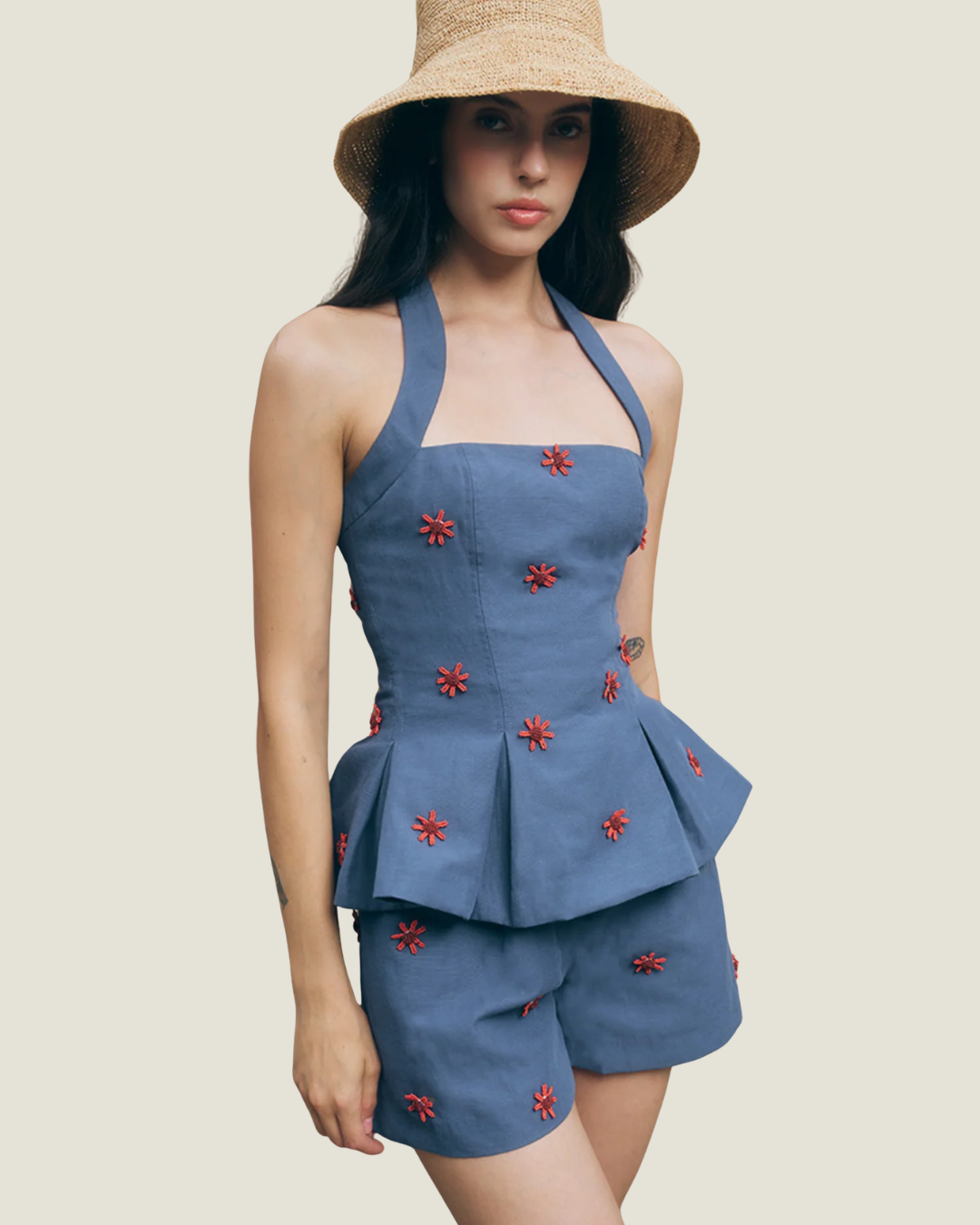 Beaded Halter Flare Top