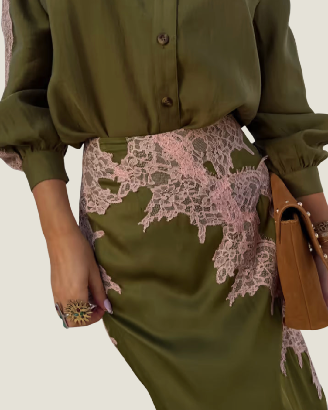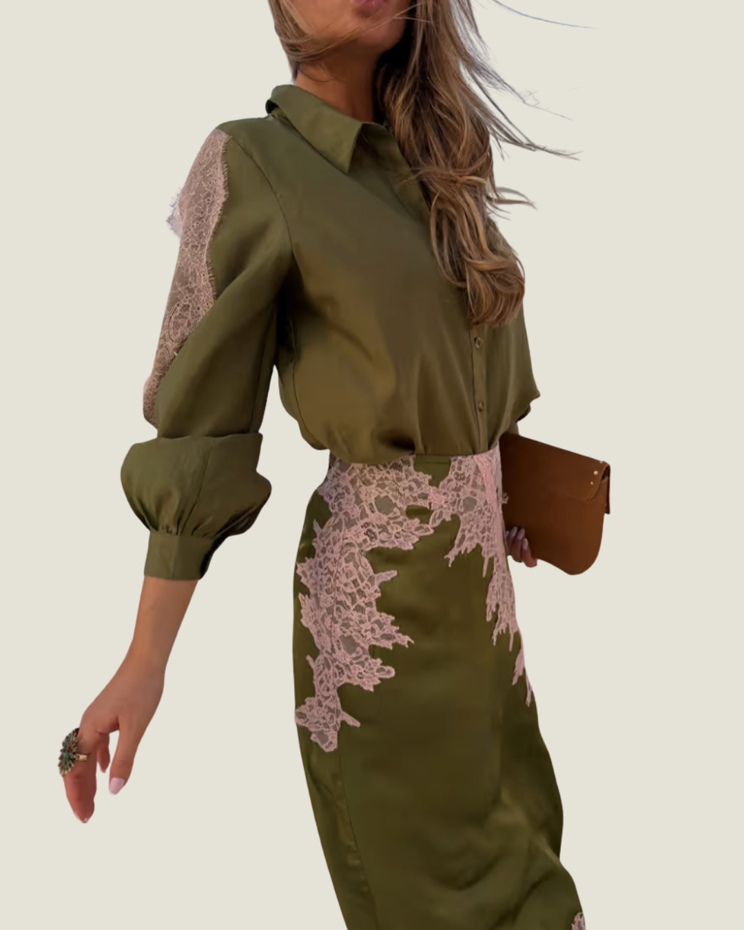 Olive & Pink Lace Marley Shirt