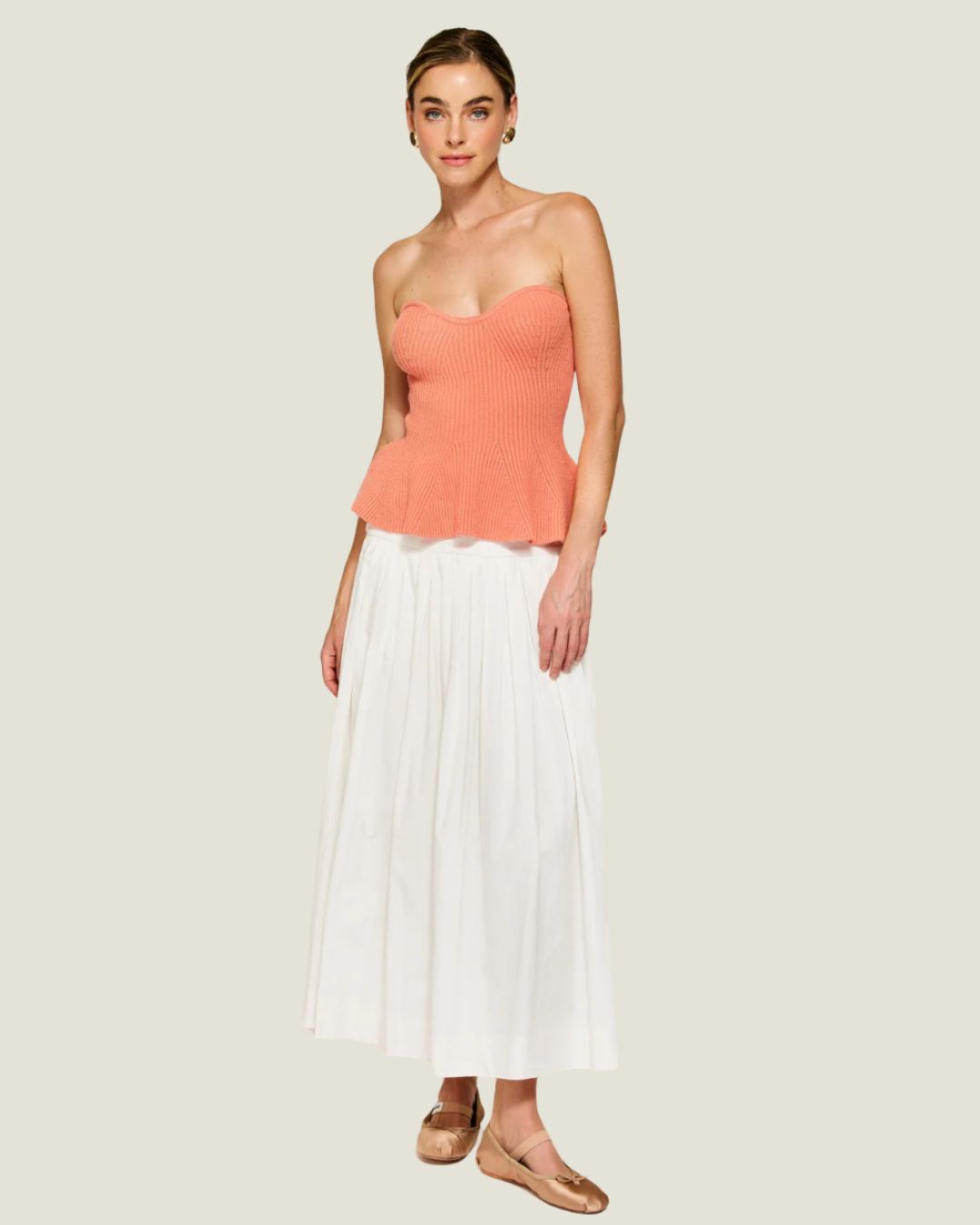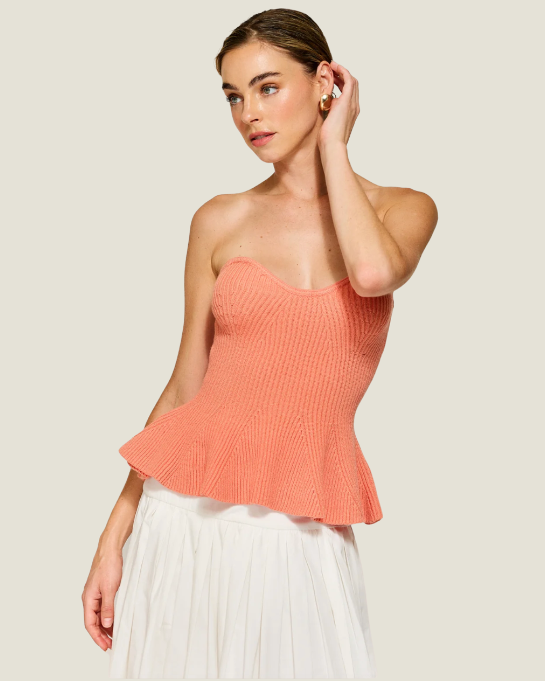 Saffy Strapless Ribbed Knit Peplum Top
