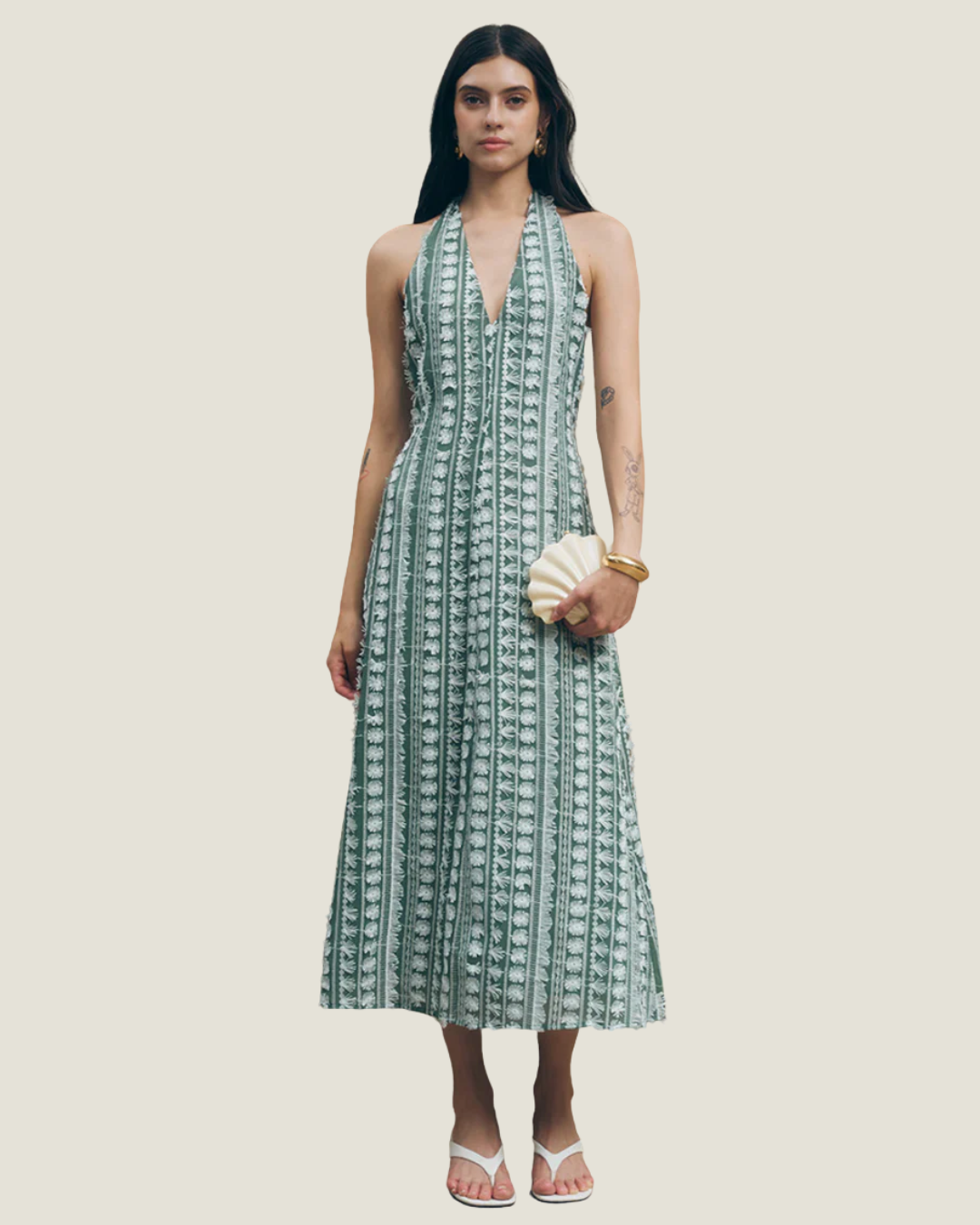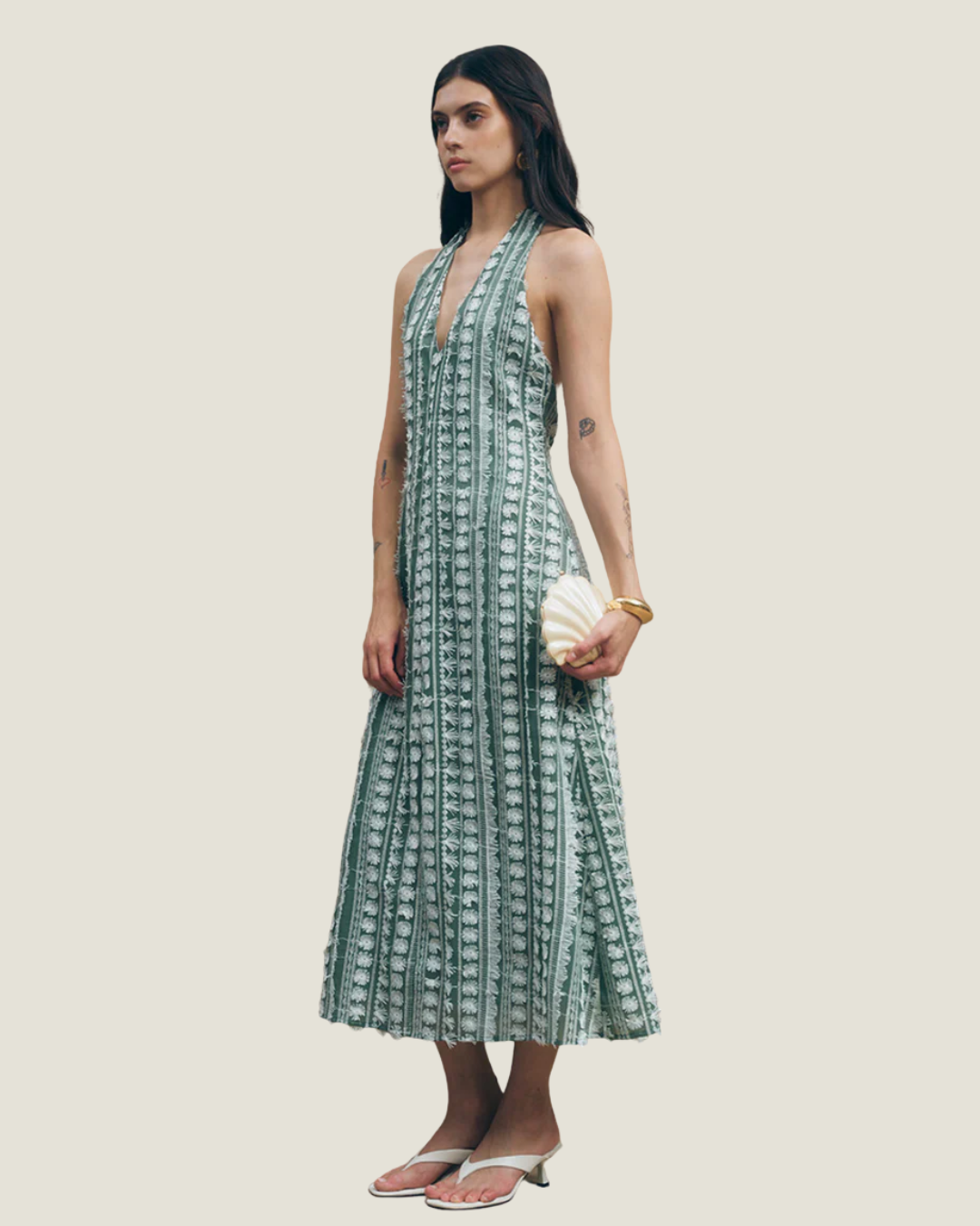 Tussah Embroidered Halter Midi Dress