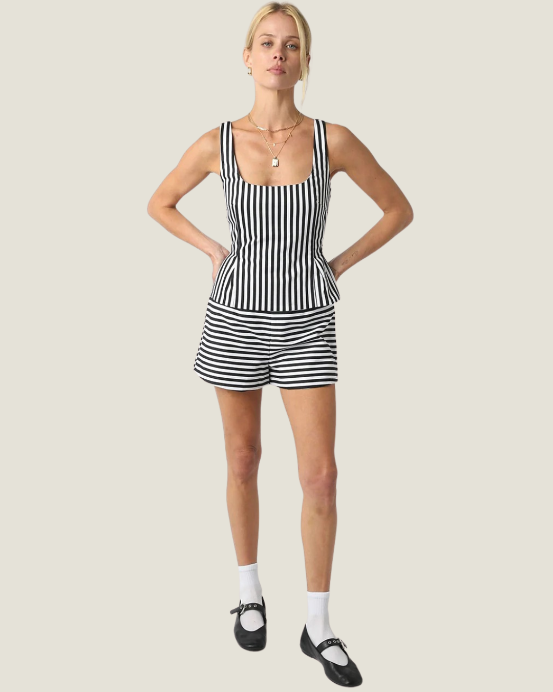 Maliya Striped High-waist Shorts