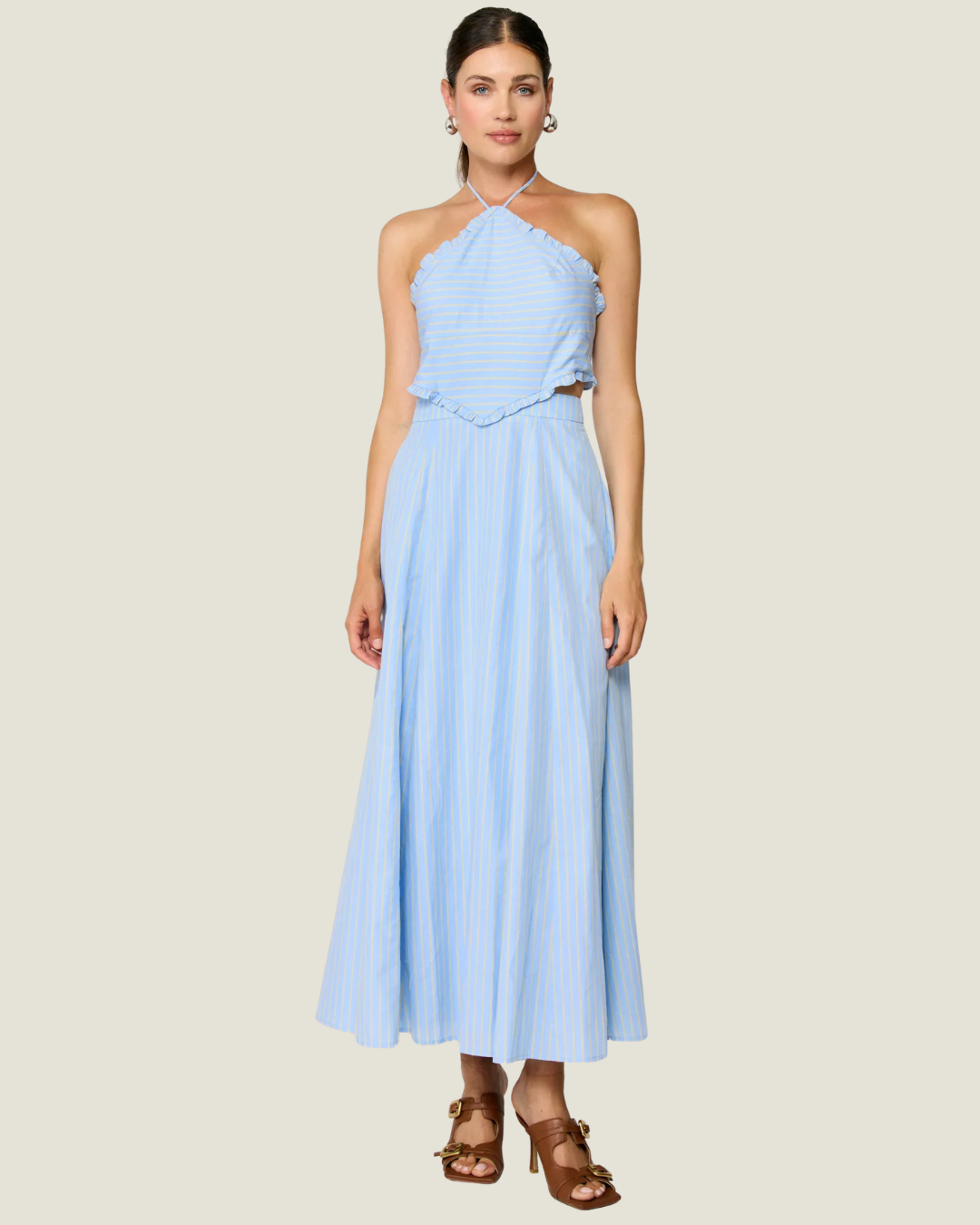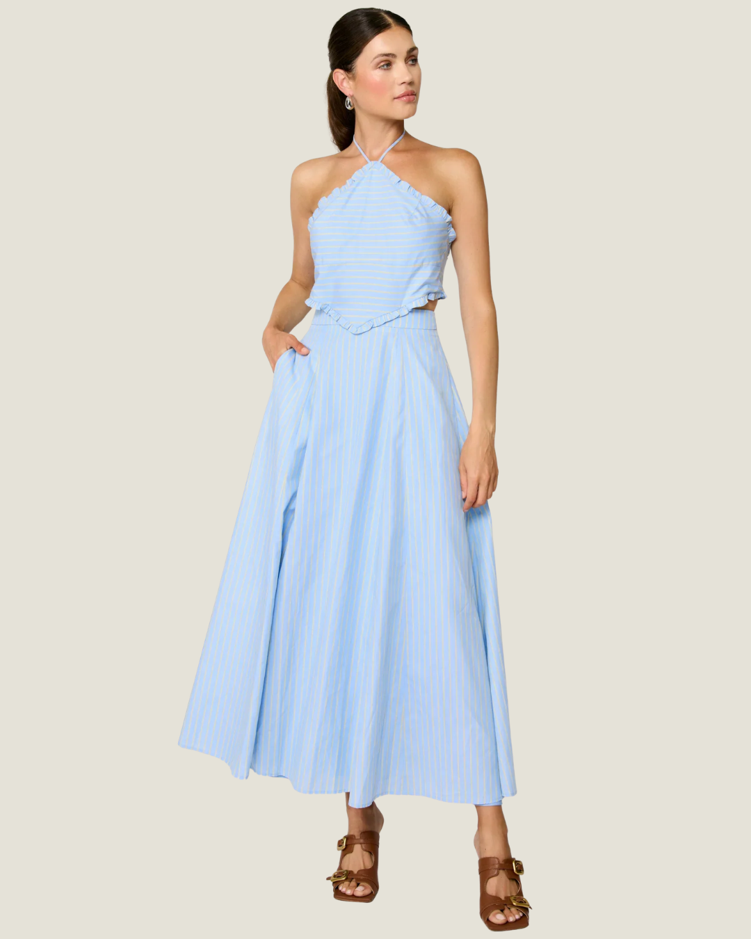Tobie Striped Poplin Halter Midi Dress