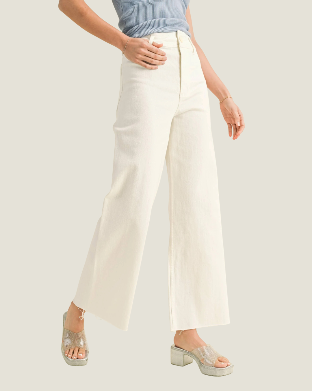 Moroney Straight Wide Leg White Pants