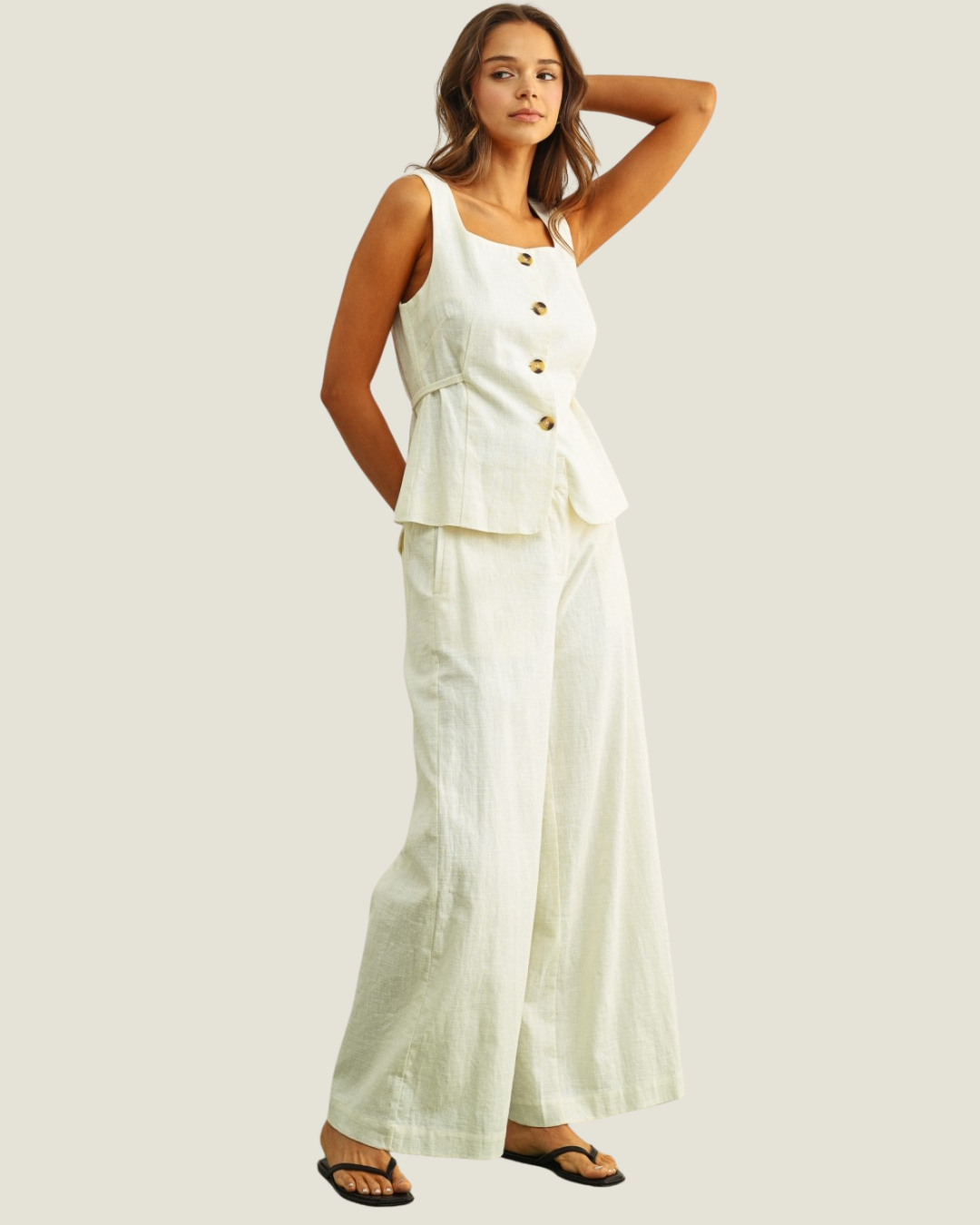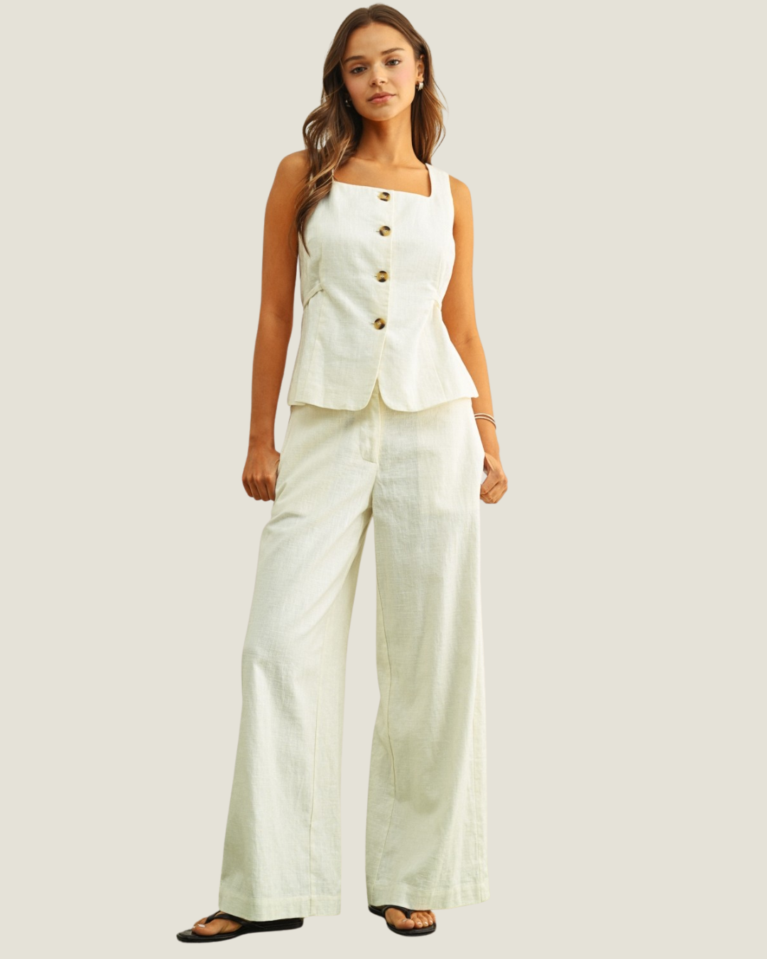 Leian White Wide Leg Linen Trousers