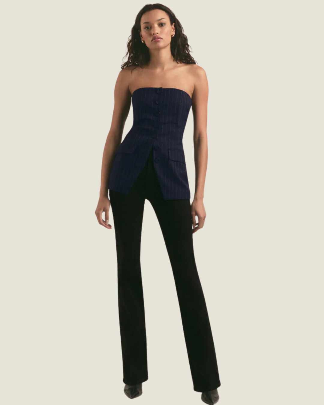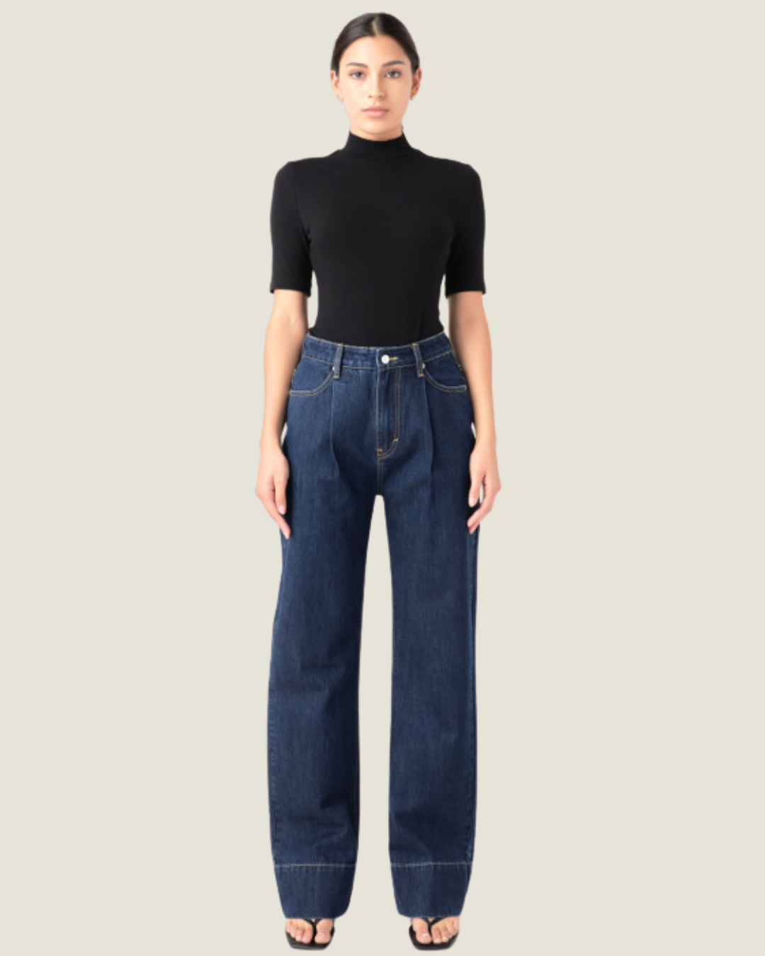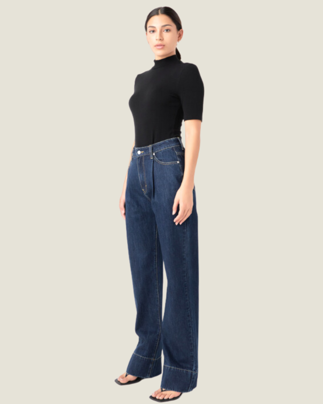 The Courtney: Navy Denim High Waisted Wide Leg Pants
