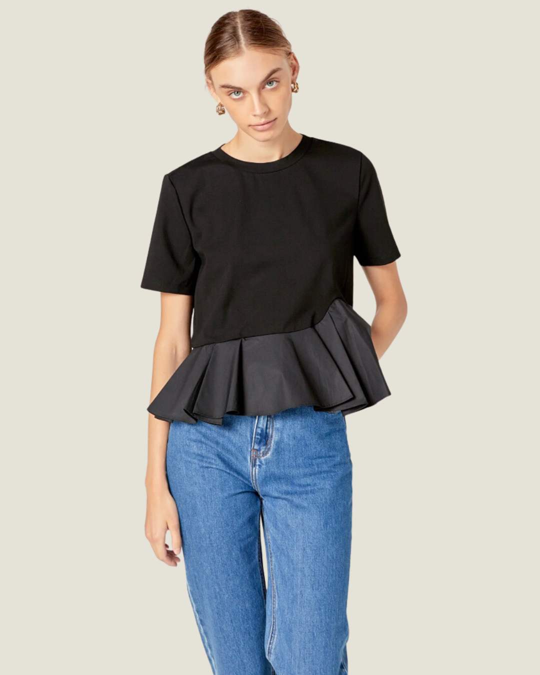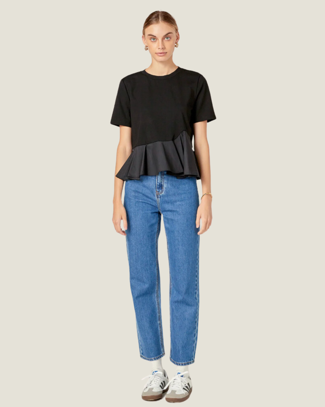 The Kimmy: Black Mixed Media Luxe Ruffle Blouse