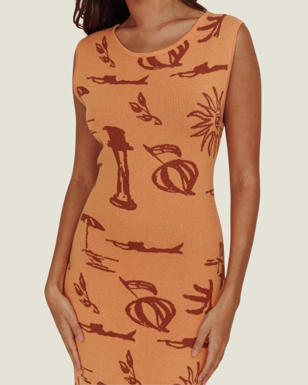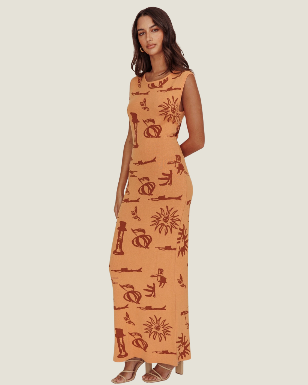 The St. Barth's: Knit Print Open Back Maxi Dress