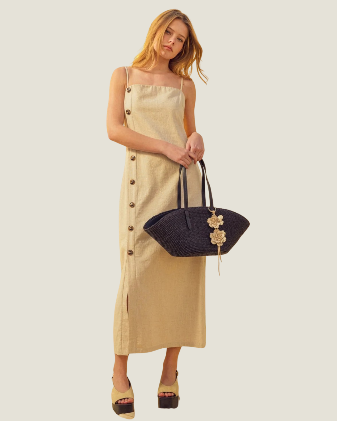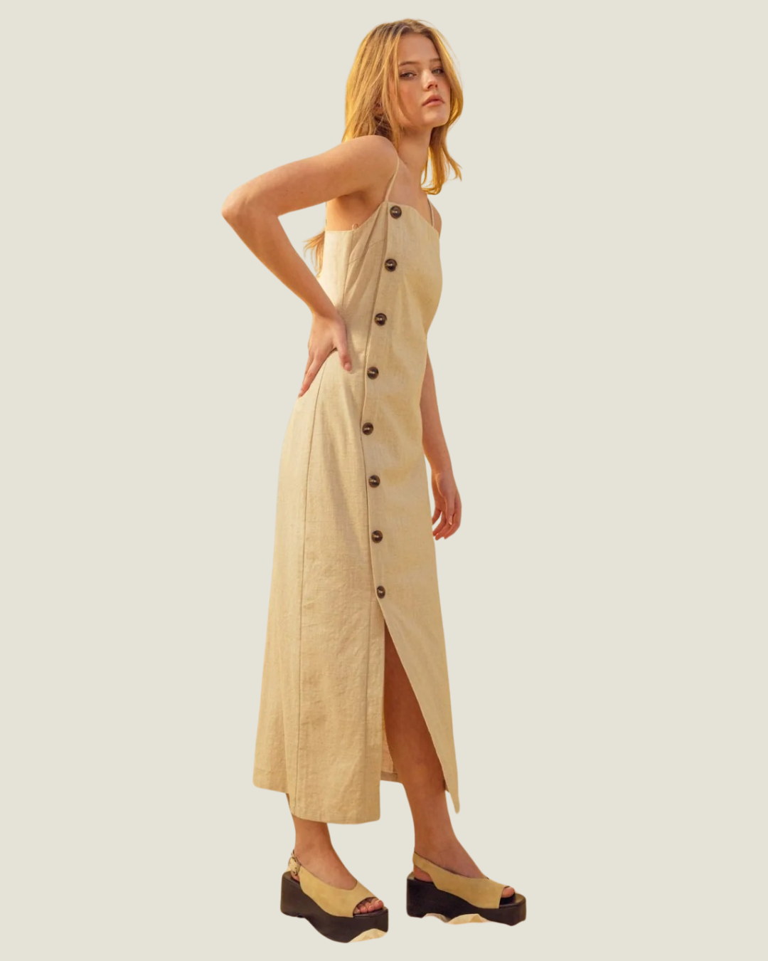 Atlas Button Detail Linen Long Dress